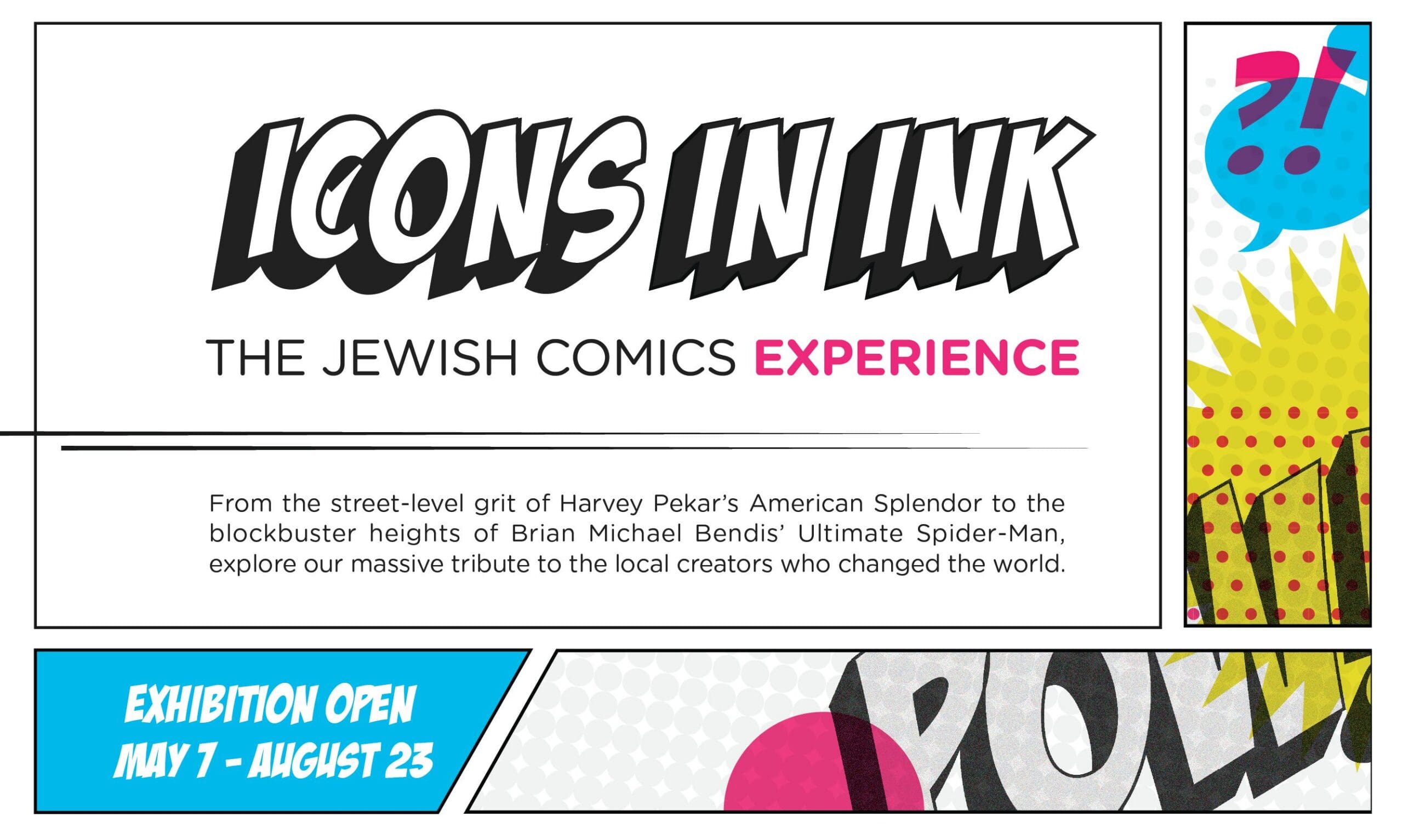 Icons in Ink: The Jewish Comics Experience examines a wide range of Jewish themes and identities in comics, recognizing the diverse roots that have contributed to this unique art form. The exhibition explores how the industry has evolved over the last century, tackling subjects from identity and the combatting of antisemitism to the changing face of the medium itself.
